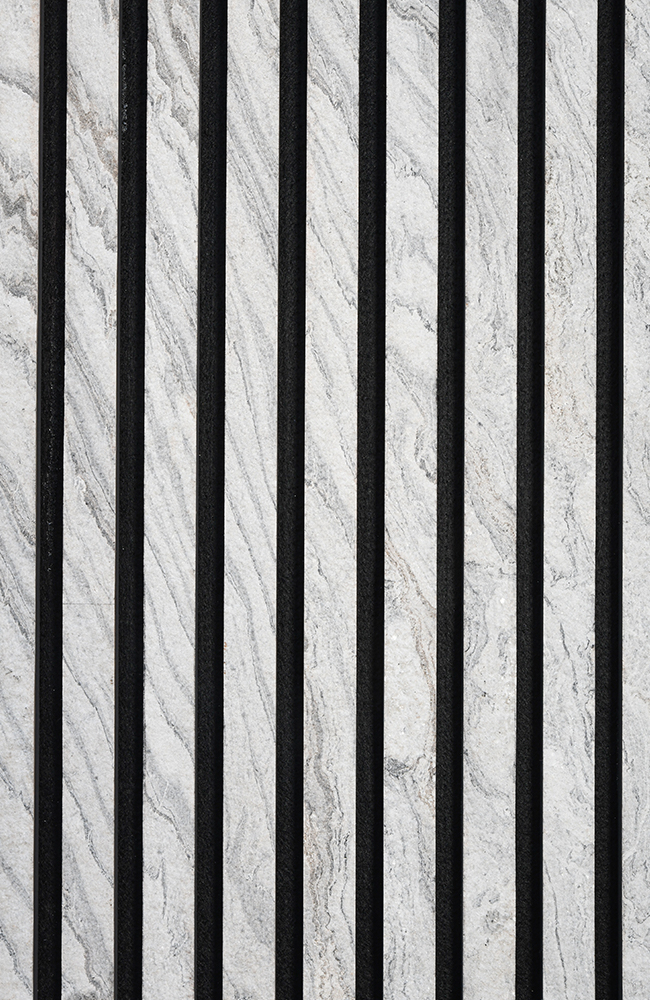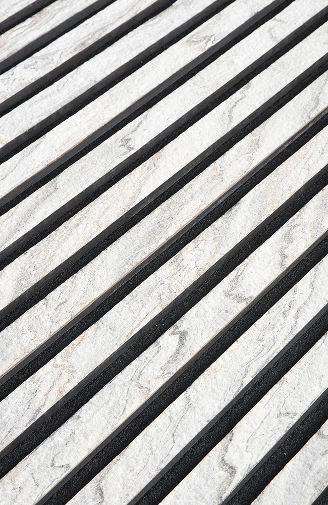 Fiecare panou este format din 9 șipci de MDF acoperite de piatra flexibila StoneFlex, fiecare având o lățime de 30 mm și o înălțime de 12 mm, cu un spațiu de 15 mm între șipci. Acestea sunt montate pe o bază din fetru acustic de 9 mm grosime, ceea ce oferă panoului un total de 21 mm grosime (piatra flexibila + șipci + fetru).